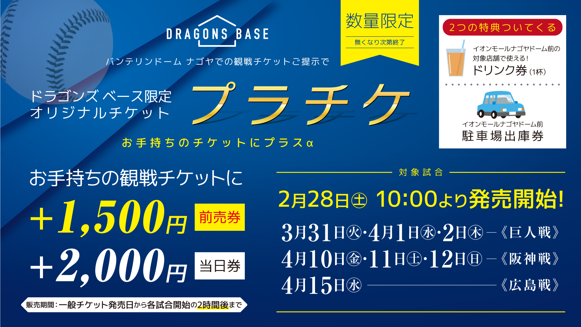 その他、バンテリンドーム ナゴヤの駐車券も対象試合の前日まで販売しております。ご利用ください。