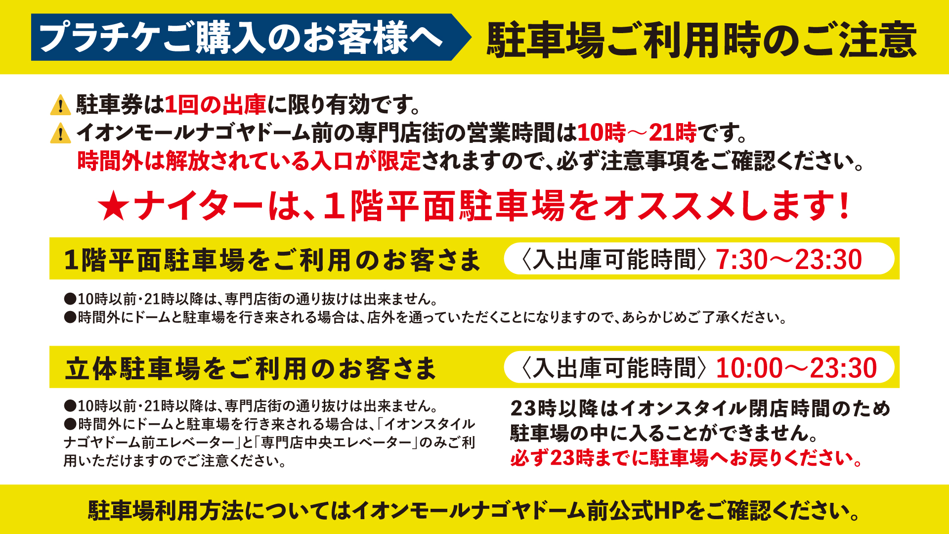 ●イオンモールナゴヤドーム前の駐車場が無料になる出庫券
